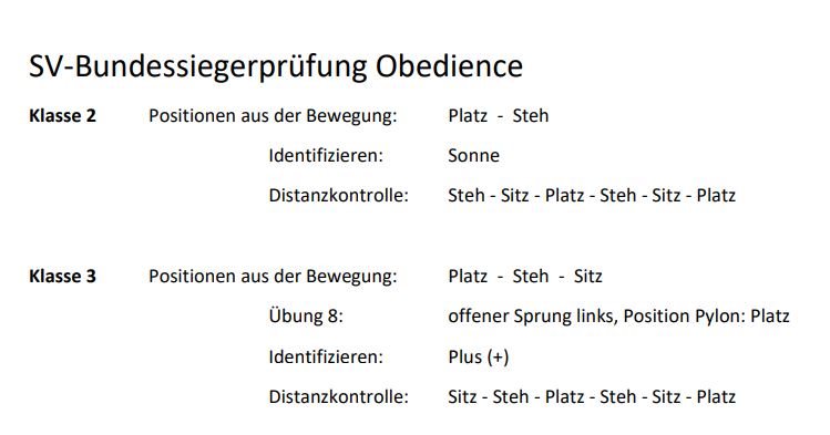Prüfungsbeginn ist am Sonntag um 8.00 Uhr. Wir beginnen mit den Gruppenübungen Klasse 1 / 2 / 3, danach Einzelübungen Klasse 1/ 2 / 3.
