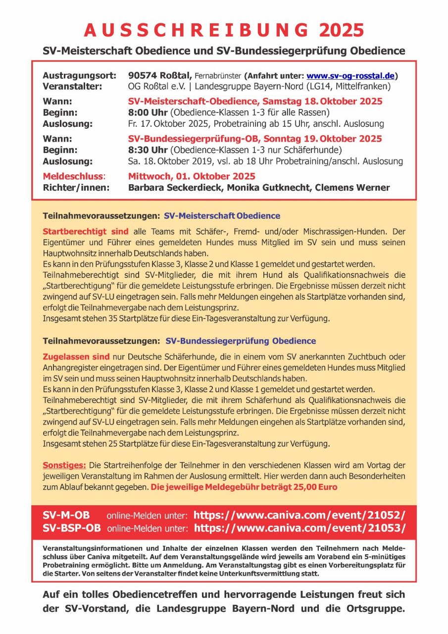 SV Bundessiegerprüfung Obedience 2025 19.10.2025